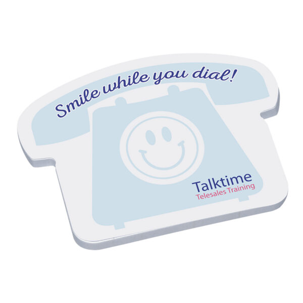 Custom promotional sticky notes supplied as a 50-sheet shaped pad, printed in 1–2 spot colours on sustainably sourced white sticky note paper. Choose from a wide range of shapes to create a practical and distinctive branded stationery item.