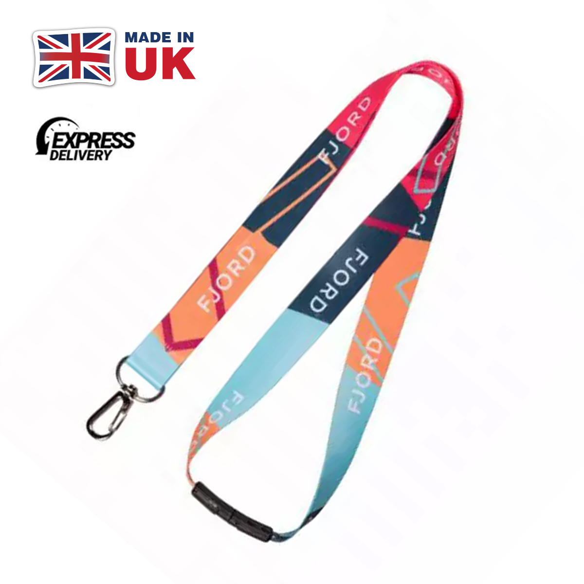 20mm Dye Sublimation Lanyard with a japan clip. All lanyards come with safety breaks as standard.